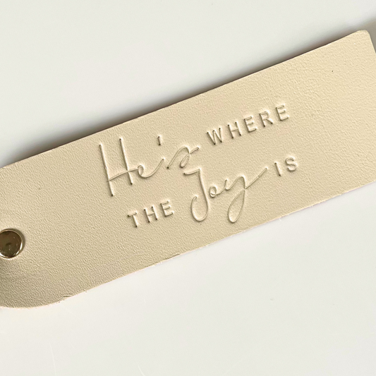 He's Where The Joy Is Leather Keychain